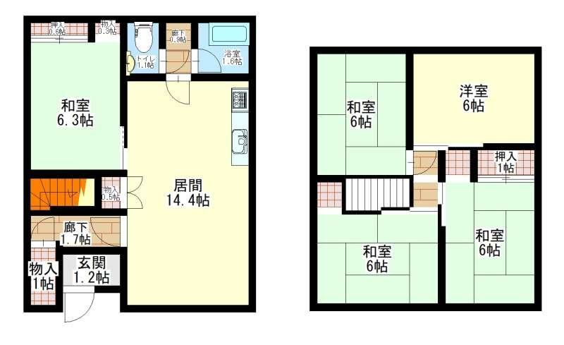 - 5LDK / 14.4LDK+6.3+6+6+6+6