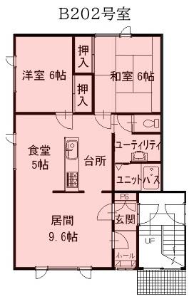 空き室はB202号室。駐車2台可能。